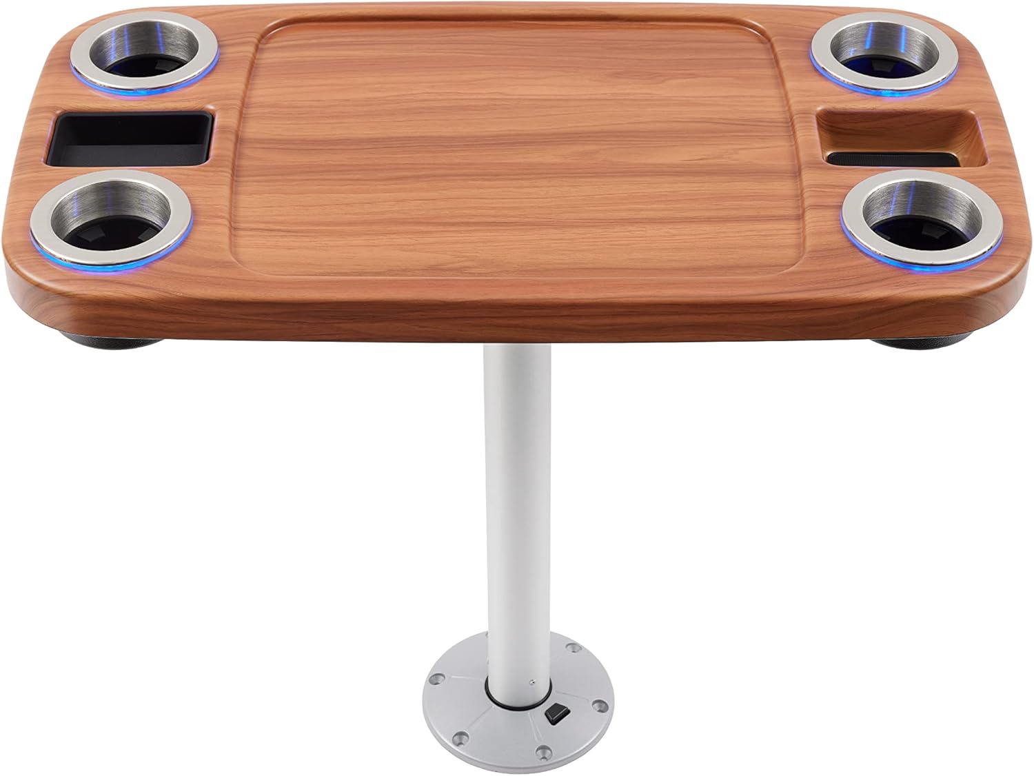 Manufacturers’ Select ITC Lit Marine Boat Table Leg Set. Pontoon Accessories, Marine Pedestal Table. Large Top with Blue Led Lit Drink Holder