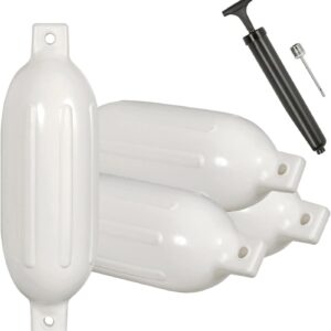 FEATURES:This essential boat accessory prevents damages to your boat when at dock or against other vesselsThe fenders is molded out of commercial strength marine vinyl for extra durabilityUV-resistant making it perfect for long term useThere are reinforced rope holes on both ends and a ribbed design all around for a resilient protection to your sailThe fenders can be used vertically or horizontally making it a multi-purpose part of your vesselDimensions: 27″(L) x 8.5″(dia)Specifications:Dimensions: 27″(L) x 8.5″(dia)Product weight: 4 lbs (each not inflated)Material: VinylNon-abrasive, UV-resistantColor: White4 boat fenders included