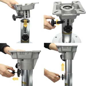 ONHI Aluminum Adjustable Height Locking Boat Seat Pedestal 13-Inch to 19-Inch,Silver Polished