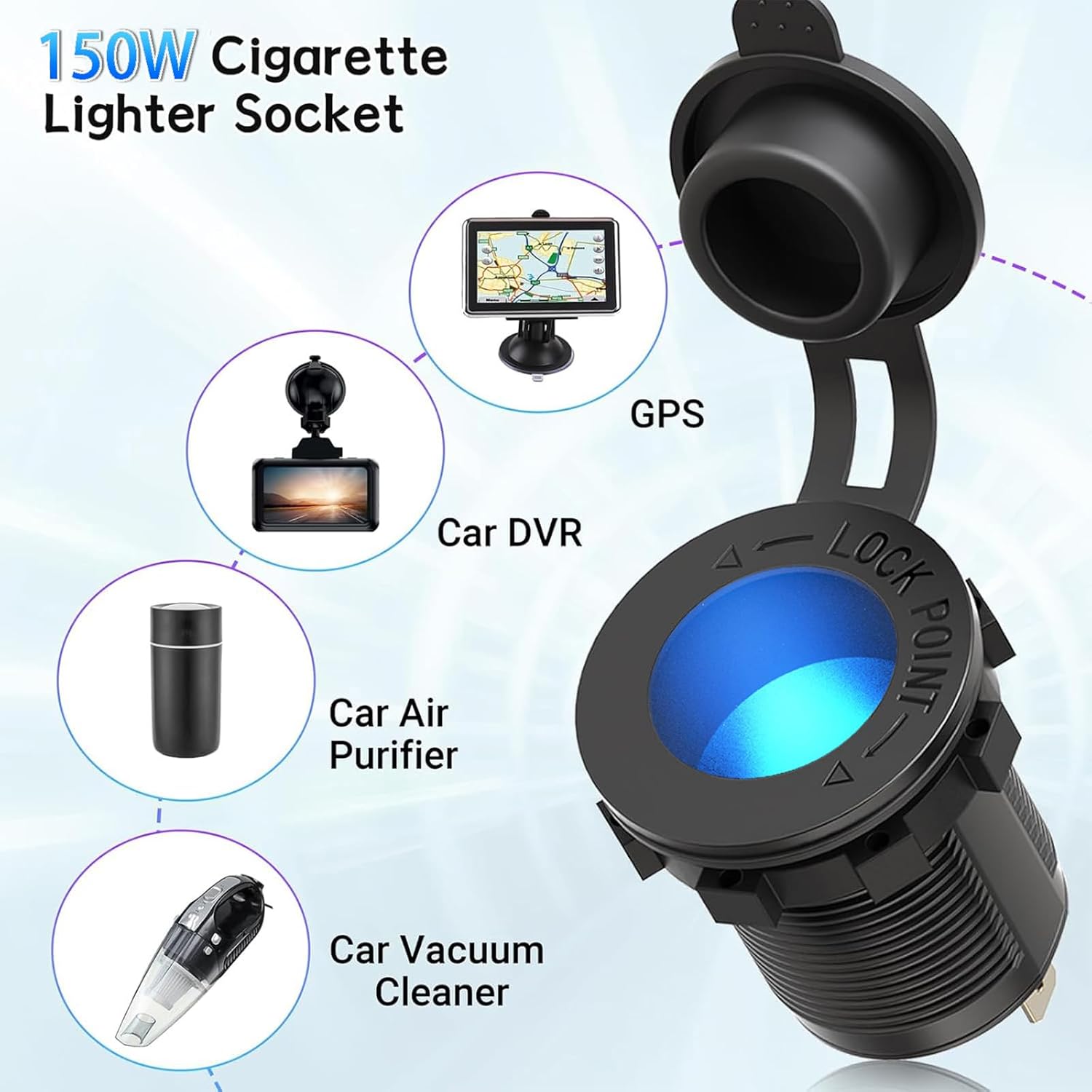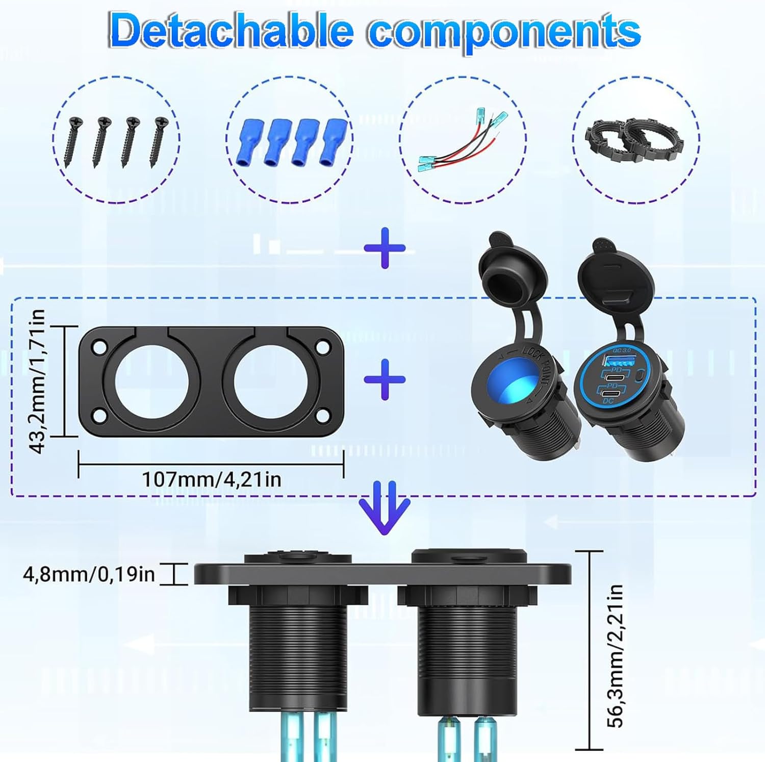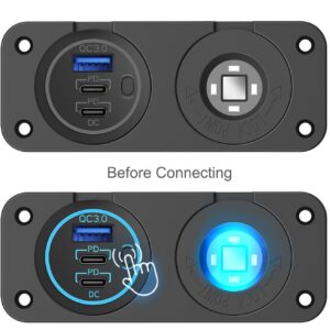 Upgraded 78W 3 Port 12V 24V USB Outlet Cigarette Lighter Socket Panel, Dual 30W PD and QC3.0 Multi Port Cylinder Charger with Button Switch and 150W Lighted Socket 2 in 1 DIY Kit for Car Boat RV, etc.