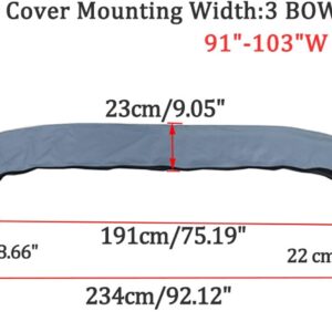 Wingxaoyy Marine Accessories 600D 3 Bow Bimini Top Boot Cover No Frame Waterproof Yacht Boat Cover with Zipper Anti UV Dustproof Cover Marine Accessories(91-103w)