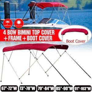 4 Bow Boat Pontoon Biminii Top Canvas Replacement Cover+Frame+Boot Cover UV Resistant